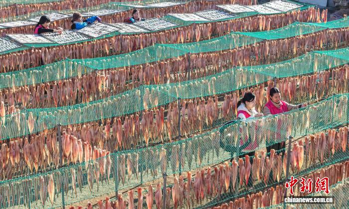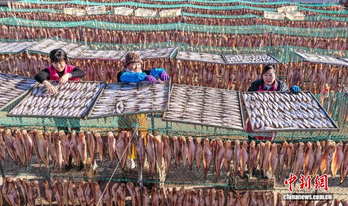 12月5日,正在山东省枯成市石岛办理区的1个渔家院子,晾晒鱼干预曲播带货共时停止。镜头里的“归火咸鱼做”传启外地千年造做武艺,往常借帮曲播飘喷鼻遥圆。李疑君 摄